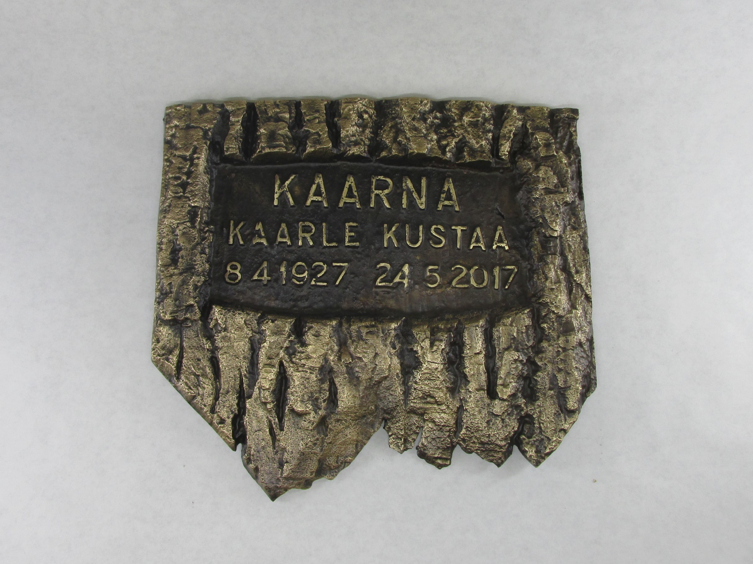 24 x 22 cm kaarnakehyksinen pronssilaatta kohokuvioisella tekstillä.