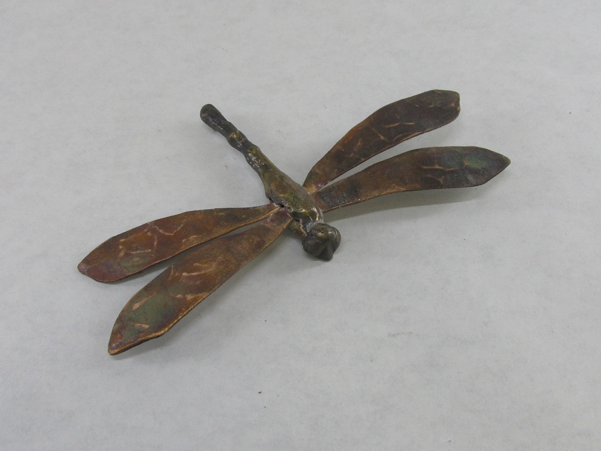 Pronssinen Sudenkorento kuparisilla siivillä. Korennon pituus 6 cm ja siipien kärkiväli 11,5cm. Lämpöpatinoitu ja lakattu.