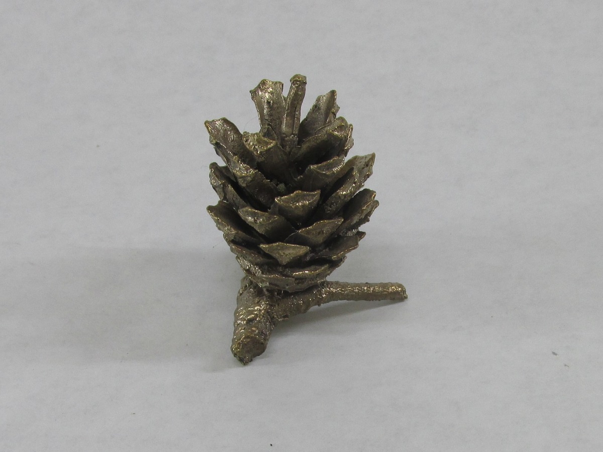 Orgaanivaluna valettu männynkäpy oksalla. Kiinnitys kahdella M3 messinkitapilla. Käpyjen ja oksien muoto ja koko vaihteleva, kuten luonnossakin. Saatavana vahattuna tai lakattuna.