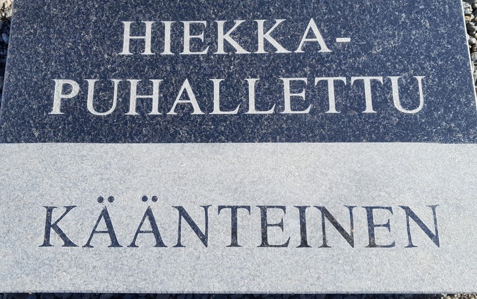 Aihio on sen verran naarmuuntunut että saatavilla ainoastaan käänteisesti hiekkapuhallettuna, niin että kirjaimet jäävät kiiltäviksi ja muuten pinta hiekkapuhalletaan.