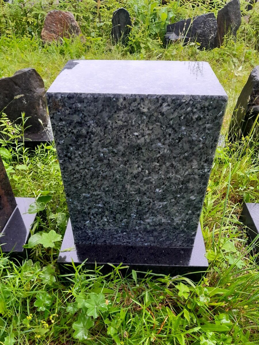 Uusio hautakivi, vaalea labradoriitti, kiilloitettu pinta ja sivut