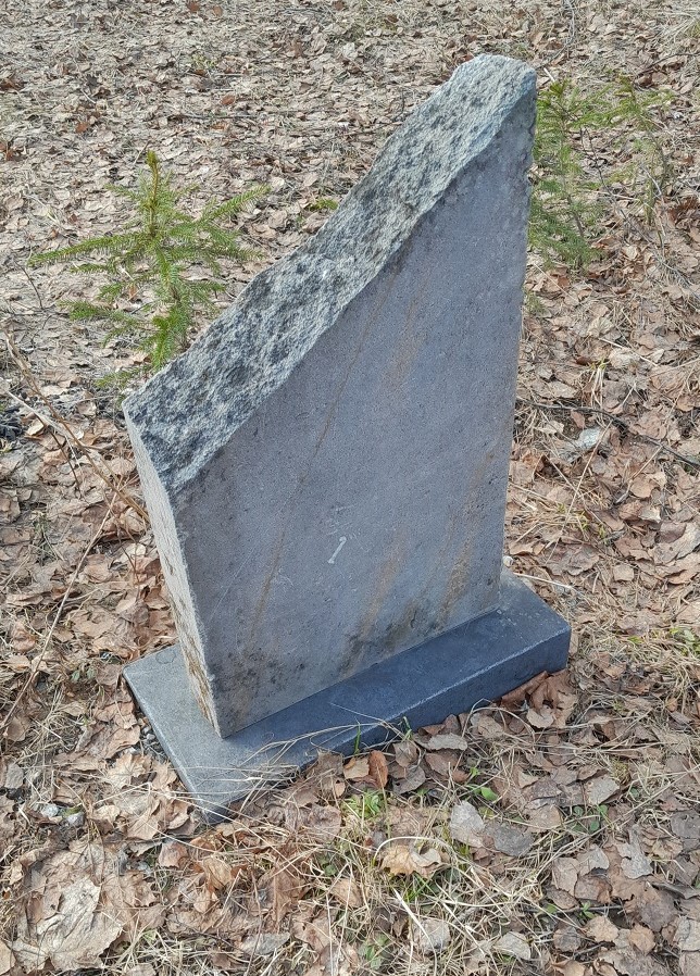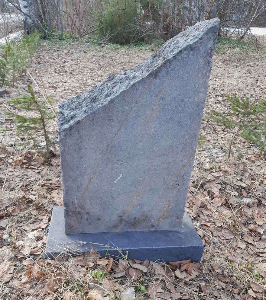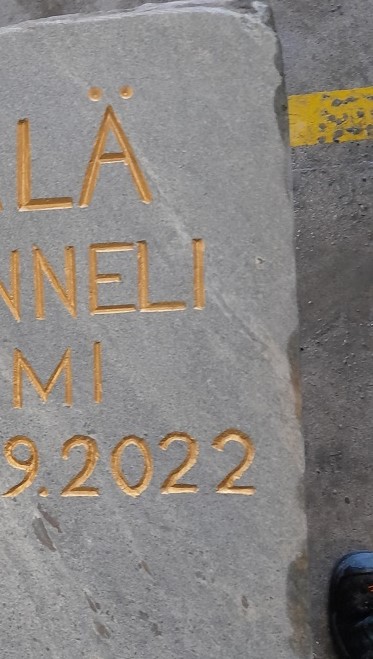 Vuolukivinen hautakivi. Tekstit kaiverretaan käsin V pohja -tyyliä noudattaen ja pinta hiotaan sileäksi vasta kaivertamisen jälkeen.